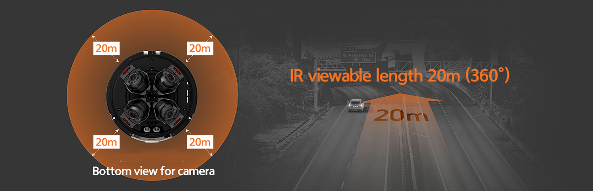 The new 4CH AI Multi-directional camera has four independent IR zones. Each zone’s IR intensity can be manually adjusted to reduce potential reflection from nearby objects.