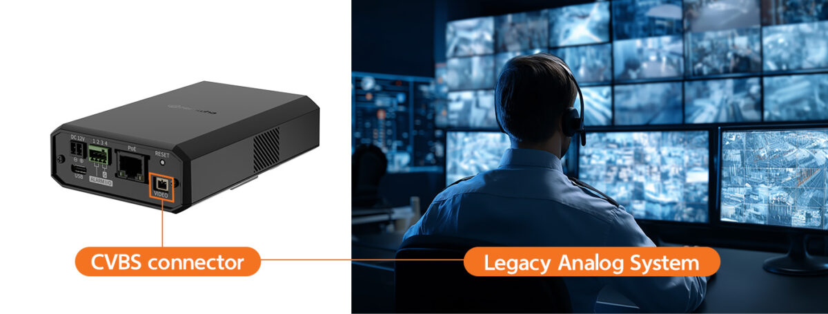 Installation convenience is maximized with support for both USB-C and Legacy CVBS connectors. The inclusion of the CVBS connector ensures seamless monitoring within existing analog infrastructure.