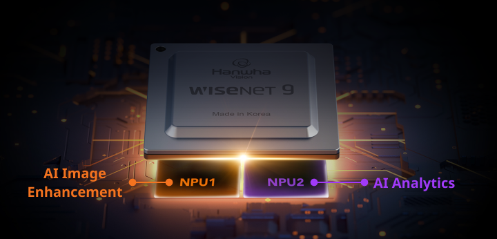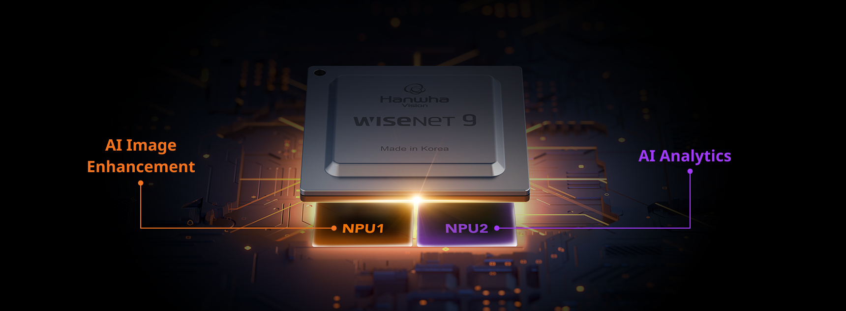 2nd Generation P series AI cameras are truly powering the next generation, thanks to the advanced Wisenet 9 SoC. The Wisenet 9 chip features a revolutionary Dual NPU architecture, separating AI-based image enhancement and analytics for guaranteed, unimpaired performance. With AI Noise Reduction, the camera delivers crystal-clear images in low light while simultaneously achieving a significant bitrate reduction. Furthermore, the upgraded WDR (extremeWDR) performance ensures sharp, accurate monitoring, capturing critical detail across all challenging scenes.