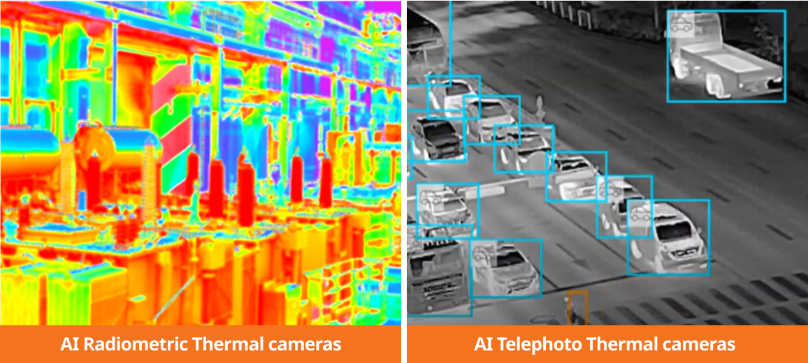 While radiometric thermal cameras are great for detecting overheating and other issues, the AI thermal telephoto camera takes monitoring to the next level. It clearly identifies objects from a distance and accurately tracks moving objects, overcoming bad weather, complete darkness, and low-contrast conditions like rain or fog.