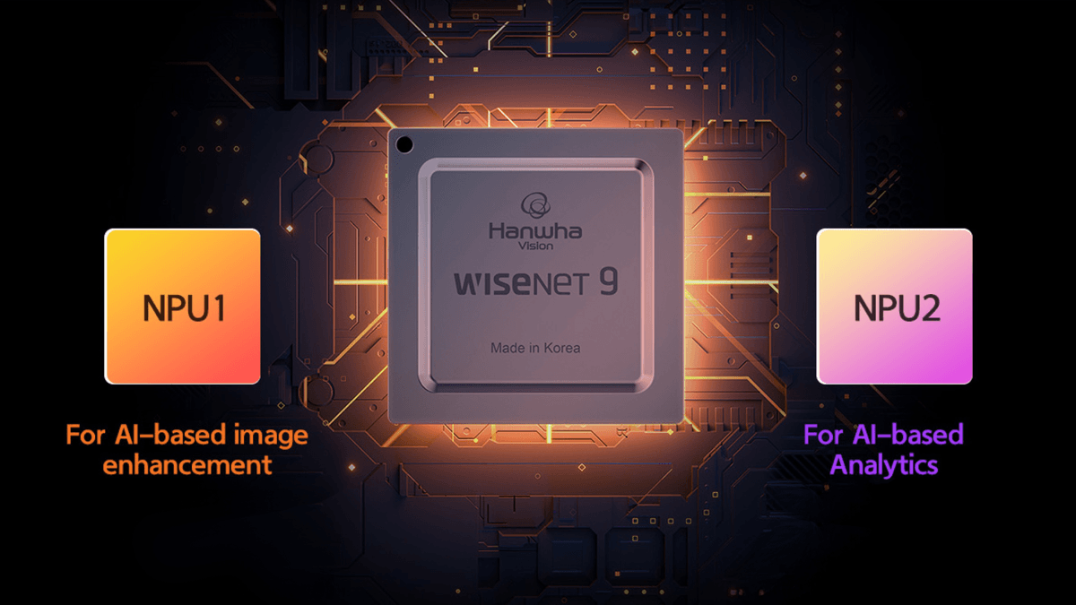 Wisenet 9’s AI engine, powered by a Dual NPU, ensures video quality and analytics have independent resources, preventing one function from impacting the other for ultimate performance.