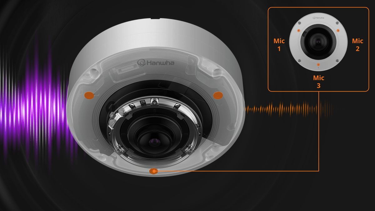 Three microphones capture clear audio and detect critical sounds like glass breaking or vehicle horns.