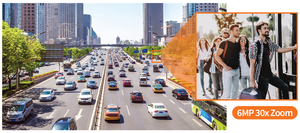 • Max. 6MP resolution • 5~150mm(30x) optical zoom (digital 32x, total 960x zoom) • Max. IR viewable length 200m • Day & Night(ICR), extreme WDR, DIS(Built-in gyro sensor) • Intelligenct Analytics, Object auto tracking(Person/Vehicle), Target lock tracking • H.264, H.265, MJPEG codec, WiseStreamII • IP66, IK10, NEMA4X, NEMA-TS 2(2.2.8, 2.2.9) • PTZ PLUS Design applied(Compact, Lighter, Simple cabling) • SFP-supported by injector