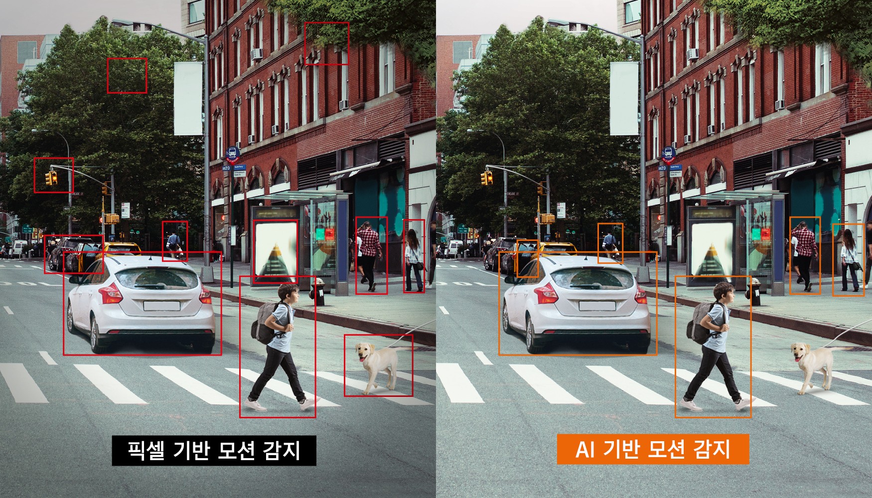 먼저 픽셀 변화에 기반해 동작했던 모션 감지는 AI 엔진 기반으로 사람과 차량 등 객체를 더욱 정확하게 감지할 수 있게 됐다. 특정 객체를 선택해 움직임에 대한 알람을 받을 수 있기 때문에 흔들리는 나뭇가지, 그림자, 동물과 같은 불필요한 움직임에 의한 오알람율이 크게 줄었다.