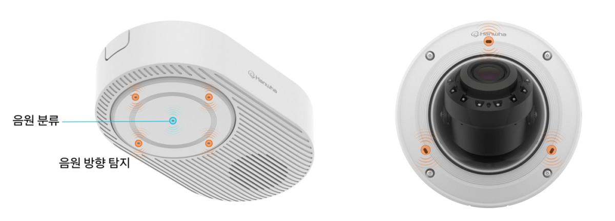 한화비전 AI 오디오 솔루션은 딥러닝 기반의 음원 분류 기술을 통해 비명이나 유리 파손음 같은 특정 소리를 분류하고, 다중 마이크를 활용한 TDoA(Time Difference of Arrival) 알고리즘으로 그 소리가 발생한 방향까지 탐지하는 혁신적인 기술을 탑재했다.