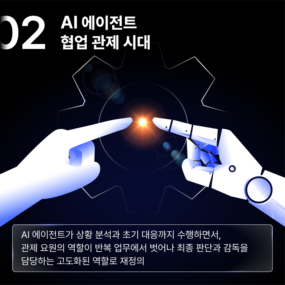 이에 따라 앞으로 관제 요원은 복잡한 상황 분석과 법률적, 상황적 맥락을 고려해 최종 의사결정을 수행하는 지휘관 역할을 하게 된다. 더불어, AI 에이전트가 자율적으로 실행한 모든 행동과 추론 과정을 투명하게 추적하고 감독하는 AI 거버넌스 관리자 역할까지 수행하게 된다. 시스템 오남용을 방지하는 이러한 필수적인 역할 수행함에 따라, 관제 요원에게 역량 고도화가 요구되는 시대가 도래한 것이다.
