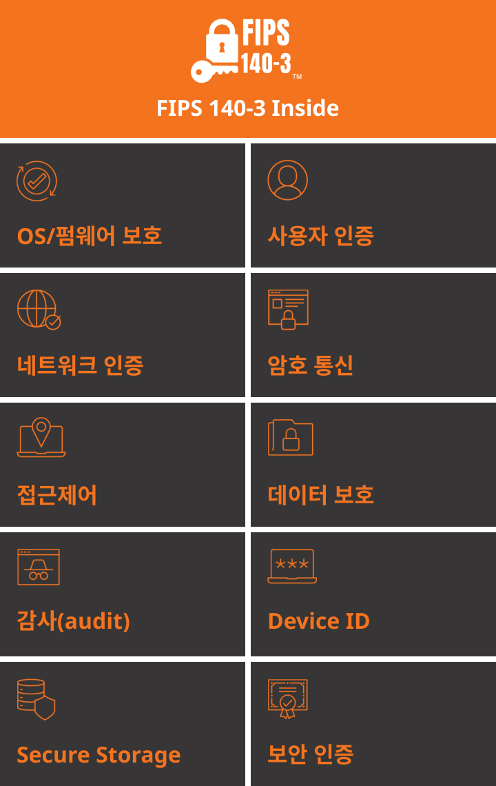 모든 계층에 보안 기술을 적용하여 데이터를 보호하며, 높은 수준의 FIPS 140-3 Level 3 표준을 충족합니다.