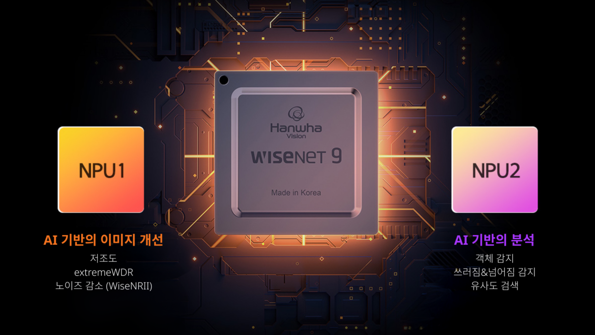 T AI Rugged PTZ 카메라는 듀얼 NPU 아키텍처가 적용된 Wisenet 9을 탑재하여 이미지 처리와 AI 분석 기능이 상호 간섭 없이 작동합니다. 따라서 복잡한 환경을 촬영할 때도 우수한 저조도 및 WDR 성능이 일관되게 유지되며, 빠르고 안정적인 AI 분석 기능을 구현할 수 있습니다. WiseStream은 영상의 디테일을 손실 없이 대역폭과 저장 용량을 더욱 최적화하여 대규모 모니터링 환경에 이상적인 솔루션을 제공합니다.