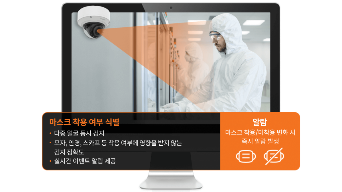 마스크 착용 검지 기능은 얼굴 특징 분석과 분류 알고리즘을 활용해 대상의 마스크 착용 여부를 정확하게 판별합니다. 의료 시설, 교통 허브, 출입 통제 구역 등에서 자동으로 방역 준수 여부를 모니터링할 수 있으며, 별도의 인력 개입 없이도 경보 및 통계 데이터를 생성해 운용 효율성을 높입니다.