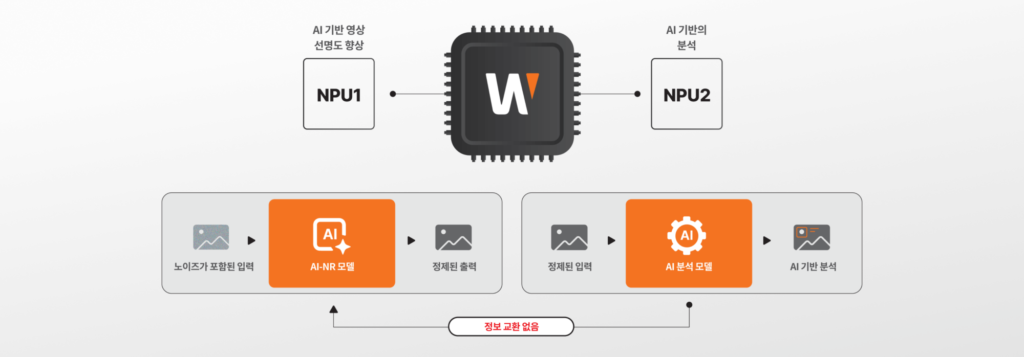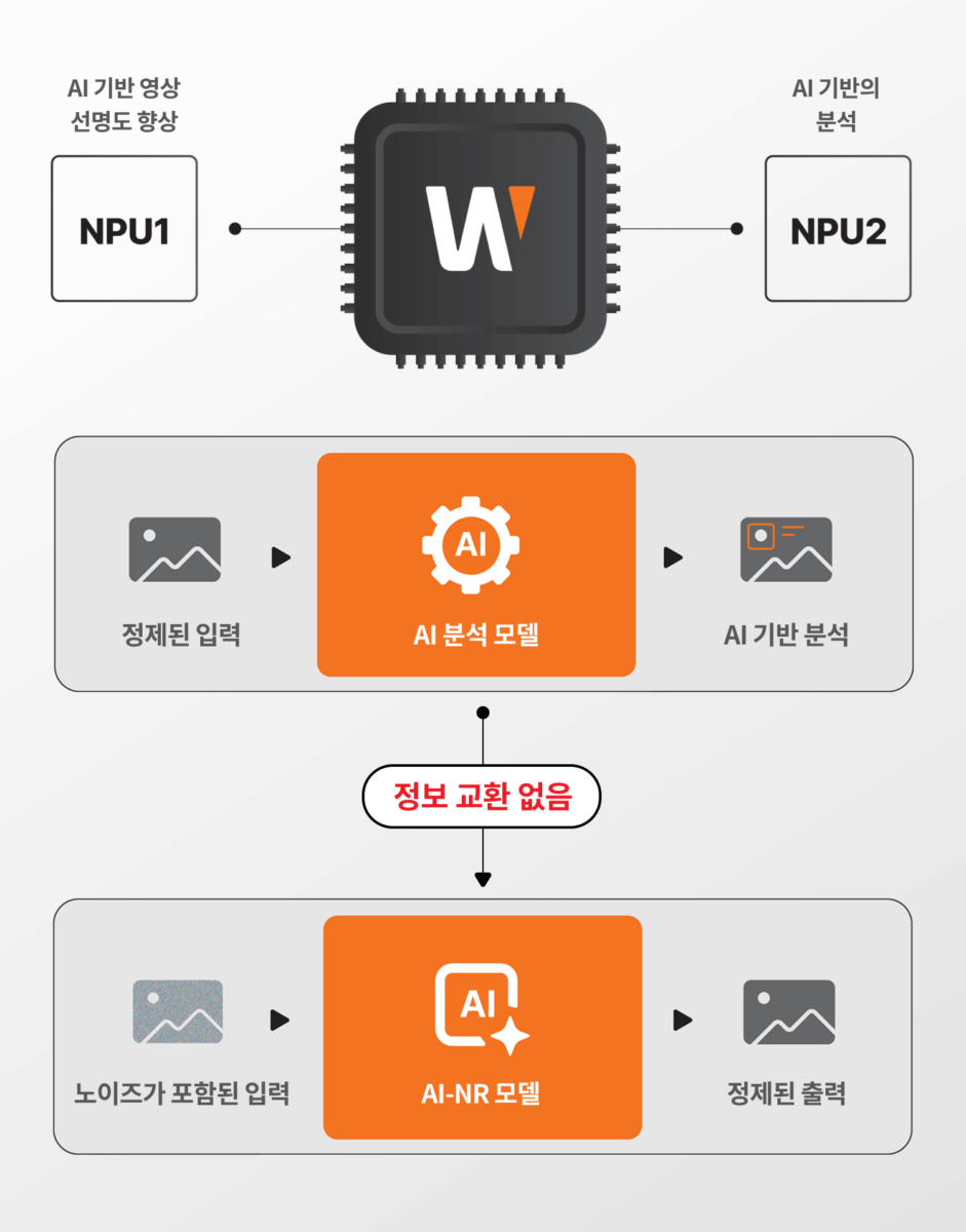 AI 기반 영상 선명도 향상의 중심에는 Wisenet 9 SoC의 Dual NPU 아키텍처가 있으며, 두 개의 NPU가 이미지 처리와 분석을 독립적으로 수행해 효율을 극대화합니다. 이 중 하나의 NPU는 이미지 향상에 집중해 노출, 노이즈 감소, 셔터 최적화를 정밀하게 제어함으로써 어떤 조명 조건에서도 보다 선명하고 역동적인 영상을 제공합니다.