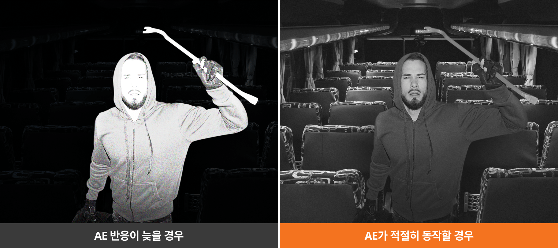 피사체가 카메라에 가까워질수록반사된 IR 광으로 인해 과다 노출이 발생할 수 있습니다. WiseIR는 주파수 조정 통합 전류를 사용하는 디밍 기술을 통해 IR LED 출력 전력을 줄여 영상 포화를 방지합니다. 가변 초점 또는 줌 모델에서는 초점이 변경되는 동안협각 IR LED와 광각 IR LED 간에 전류를 분배해 균형 잡힌 조명을 유지합니다. PTRZ 모델에서는 렌즈가 이동함에 따라 IR LED 뱅크 사이에서 전류를 동적으로 재분배하여, 현재 시야 방향에 일관되고 효과적인 조명을 제공합니다.
