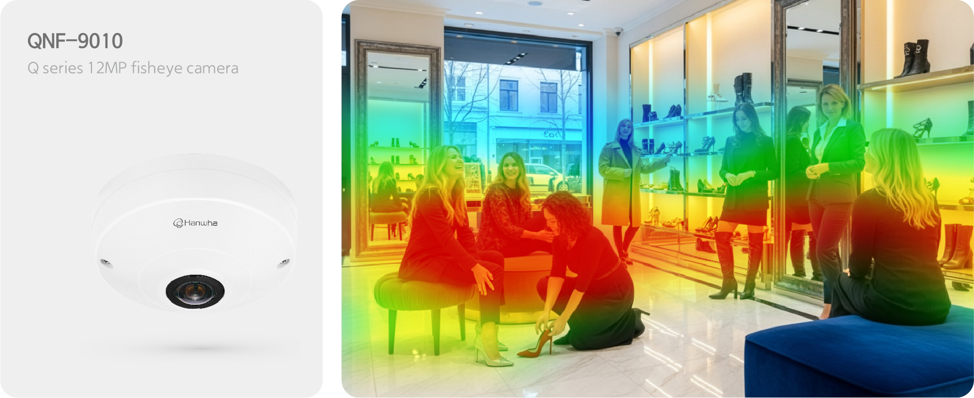 However, for luxury retailers that own and operate their own facilities, Hanwha Vision’s PNM-C16013RVQ, an AI-enabled mini multi-directional camera, or Hanwha Vision’s PNM-C12083RVD, a vandal-rated outdoor network camera featuring two channels with AI & IR in a dome form factor, are excellent options.