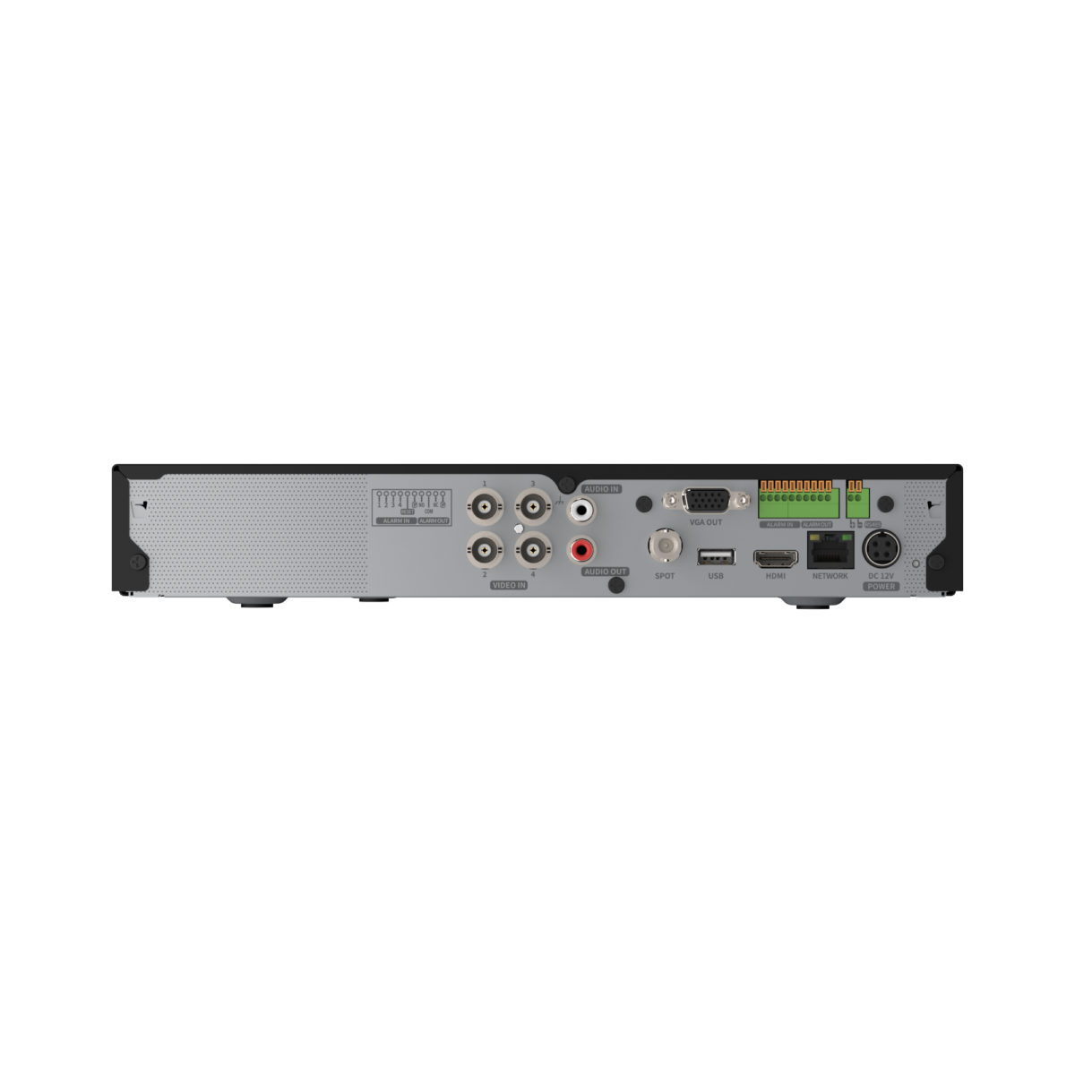 • AHD/TVI/CVI 4ch, Up to 5MP Camera Input • IP up to 5MP Input • H.265, H.264, MJPEG • 30Mbps IP camera recording • 1RJ-45(WAN, 10/100) • 1 SATA HDD up to 6TB • 4K HDMI Monitor output • P2P service(QR code connect) support